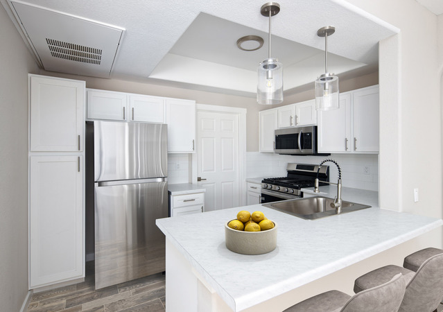 Our spacious one, two, and three bedroom apartment homes offer fully equipped gourmet kitchens, cozy gas fireplaces, large windows to welcome natural light, full-size individual washer and dryer sets, and oversized outdoor patios or balconies. Beyond the common area features, our homes boast oversized walk-in closets, large bathrooms including deep bathtubs, and plenty of storage throughout. The renovated units spotlight upgraded stainless steel kitchen appliances, new countertops and refreshed cabinetry, new vinyl flooring and carpet, a fresh coat of paint, designer light fixtures and new ceiling fans.